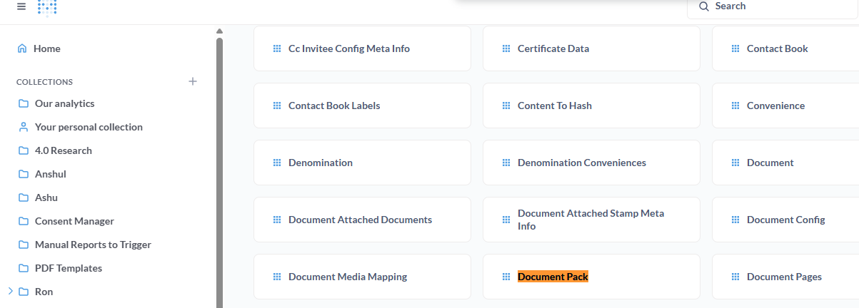 Step 4: Go back to the Metabase main page and search for the Document Pack.