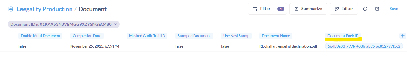 Step 5: Filter with the Documents Pack ID that was copied in Step 3.
